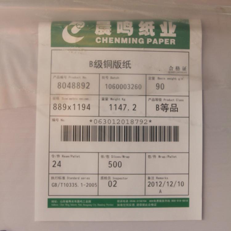 晨鸣单面铜版纸规格 90g雪鹰单面铜版纸