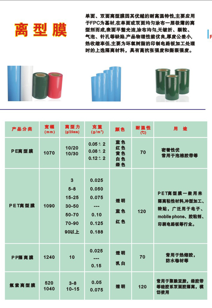品欣超强大的PET离型膜阵容