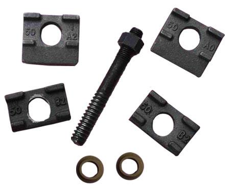 行车配有各种型号的压板、鱼尾板、螺栓、胶垫、焊接式的压轨器等品种
