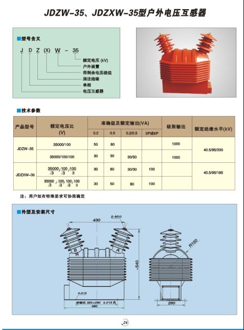JDZW-35电压互感器35KV户外干式