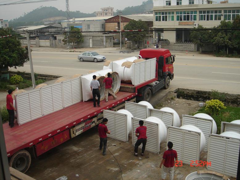 四、作排风扇用:目前一般排风扇(俗称扬谷扇)效能比较差,一台排风扇吹不到几个人,,负压风机则不然,不管是放在地上用还是挂在空中用。一般1000平方米车间使用4台,即有满屋都是风吹的功效。