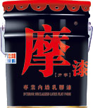 产品介绍 摩“力字”漆包装设计新颖独特,其除具备标准乳胶漆的一切特性外,还具有如下特点:超强遮盖力、超易涂刷性、防霉抗菌、多种白度设计(按国际东西方各民族白度喜好不同设置五种白度);各种涂层涂刷适应性强,环保安全性能优异。 技术指标 TECHNICAL INDICATORS 涂刷面积:8-12㎡ /kg(一涂) 稀释比例:0-5%清水稀释 光 泽:平光 表干时间:1.0-1.5h 耗 漆 量:理论值-12.8㎡ /L(本注释为一涂理论面积,干漆膜厚度30微米)因底材表面干燥和平整致密情况不同,实际耗漆量会有所差异。 规 格:18L 执行标准:GB/T9756-2009(质量标准)GB18582-2008(环保标准) 产品属性内墙漆标准规格包装分为铁桶和塑桶两种材质,均为每桶18L、20L,非标产品另行订制。