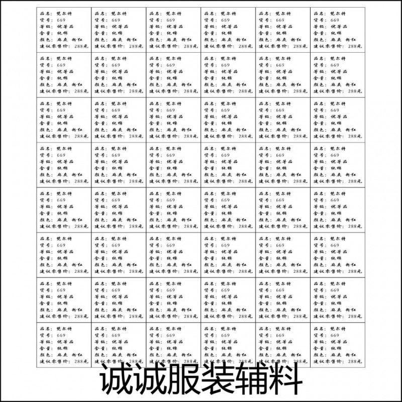 企业简介:郑州诚诚服装辅料公司(简称“诚诚辅料”)成立于2002年,位于中国女裤名都河南省郑州市。是一家专业集设计织造印刷于一体的现代化服装辅料的厂家。主要产品有:服装吊牌吊粒,商标,彩卡,织唛,印唛,彩带,水洗标,不干胶,手提袋等一系列配套产品。公司一贯坚持“质量第一,用户至上,优质服务,信守合同”的宗旨,凭借着高质量的产品,良好的信誉,优质的服务,产品畅销全国近三十多个省、市、自治区以及远销中东,东南亚等国家。竭诚与国内外商家双赢合作,共同发展,共创辉煌!电话:13673624962 QQ:383214330 184774958
