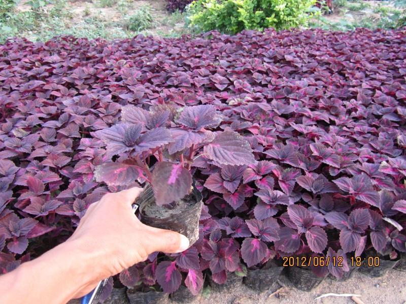 产品介绍彩叶草多年生草本植物,老株可长成亚灌木状,但株形难看,观赏价值低 ,故 多作一、二年生栽培。株高50~80cm,栽培苗多控制在30cm以下。全株有毛,茎为四棱,基部 木质化,单叶对生,卵圆形,先端长渐尖,缘具钝齿牙,叶可长15cm,叶面绿色,有淡黄、桃红、朱 红、紫等色彩鲜艳的斑纹。顶生总状花序、花小、浅蓝色或浅紫色。小坚果平滑有光泽。彩叶草 变种、品种极多,五色彩叶草叶片有淡黄、桃红、朱红、暗红等色斑纹,长势 强健。黄绿叶型彩叶草小黄绿色,矮性分枝多。皱边叶 缘裂而波皱大叶型具大型卵圆形叶,植株高大。培育方法 彩叶草有高温温室的条件下,四季均可盆播,,一般在3月于温室中进行。用充分腐熟的腐殖土与素面沙土各半掺匀装入苗盆,将盛有细沙土的育苗盆放于水中浸透,然后按照小粒种子的 播种方法下种,微覆薄土,以玻璃板或塑料薄膜覆盖,保持盆土湿润,给水和管护。发芽适温25℃至30℃,10 天左右发芽。出苗后间苗1次至2次,再分苗上盆。播种的小苗,叶面色彩各异,此时可择优汰劣。扦插一年四季均可进行,极易成活。也可结合植株摘心和修剪进行嫩枝扦插,剪取生长充实饱满枝条.截取10cm左右,插入干净消毒的河沙中,入土部分必须常有叶节生根,扦插后疏荫养护,保持盆土湿润。温度较高时,生根较快,期间切忌盆土过湿,以免烂根。15天左右即可发根成活。也可水插,用晾凉的半杯白开水即可,插穗选取生长充实的枝条中上部2-3节,去掉下部叶片,置于水中,待有白色水根长至5-10毫米时即可栽入盆中。其他说明彩叶草苗期易发生猝倒病,应注意播种土壤的消毒。生长期有叶斑病危害,用50%托布津可湿性粉剂500倍液喷洒。室内栽培时,易发生介壳虫、红蜘蛛和白粉虱危害,可用40%氧化乐果乳油1000倍液喷雾防治。 幼苗猝倒病是播种繁殖瓜叶菊常遇到的一种病害,常可见到幼苗叶色翠绿即倒伏死亡,或腐烂或干枯,该病主要由瓜果腐霉菌和立枯丝核菌引起,病菌在土壤中或病残体上越冬,由种子或水滴喷溅传播。防治方法见凤仙花猝倒病防治。幼苗期要根据设定的株形进行摘心,若想培养为丛生而丰满的园柱形,则必须对幼苗的主干摘心,若想培养为圆锥形,则主干不摘心而是对侧枝进行多次摘心,若不采种,则应及时对花序摘心。交易说明我们以最优的品质,最优惠的价格,秉承以高质量的草花和绿化苗木产品,真心服务于客户为宗旨,坚持信誉第一、客户至上的经营思路,竭诚欢迎新老客户光临、惠顾、合作、共同发展!