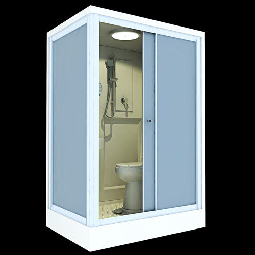 主要部件:底盆(亚克力材质)、背板(亚克力材质)、玻璃门(全钢化玻璃)、顶盖(亚克力材质)、水路、电路、淋浴组件、马桶组件、洗漱组件、照明组件、换气组件