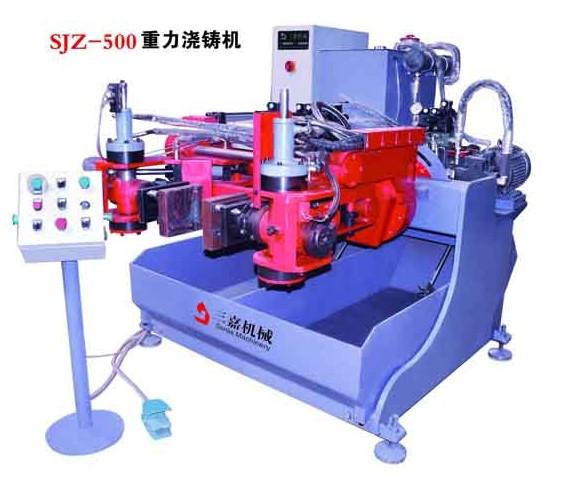产品介绍随着铜、铝、锡、锌合金浇铸机、锌材加工业生产的蓬勃发展和产业的多样化,铜铝、锌、铸钢、铸铁、不锈钢、钢铁、等加工行业的生产工艺也在不断更新,改进。为了适应其生产需要,根据重力铸造的工作原理,我公司专门设计出SJ-500型的重力浇铸机。它适用于黄铜重力铸造,操作简单,设计新颖,价格合理。(公司引进先进的技术设备,目前已经生产出重力铸造成套设备,包括重力铸造工艺辅导、人工培训、模具设计)。产品属性1.模具最大轮廓尺寸 Maxiumum outlined diameter of mold 500mm 2.模具最大重量 Maxiumum weight of mold 150kg 3.模底板间最大距离 maximum distance of mold base plate 510mm 4.最大合模行程 maximum clmping itinerary 270mm 5.侧浇铸角角度范围 Angle range of Side casting 0°-90° 6.前浇铸角度范围 Angle range of Front casting 0°-90° 7.模具浸液角度范围 Angle range of mold immersion 0°-90° 8.工作油压 Oil pressure 50-70bar 9.机器总功率 Total power 5.5kw 10.三相电源 Three-phase power 380v/50hz(用户有特殊要求除外) 11.油箱容量 Oil tank capacity 220L 12.模具浸液槽容量 Volume of mold immersion其他说明设备净重Equipment net weight 2000kg设备最大轮廓尺寸 Equipment maximumimum outlined size 2m×1.68m×1.75m交易说明真诚欢迎来电咨询!!!!!