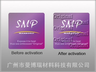 形状记忆防伪又称记忆防伪,是一种新兴的防伪技术,工艺复杂,识别方法简单,可广泛应用于各个领域的产品。形状记忆防伪是采用单个分子链分子数目大于10000的高分子化合物作为基础材料,通过一系列的化学反应、物理反应、加工成型等复杂工艺,使材料具有记忆功能, 在加温≥65℃情况下,材料就会记忆起设计在材料里面的3D立体文字或图案,并凸显出来,从而达到检验产品真伪的效果。