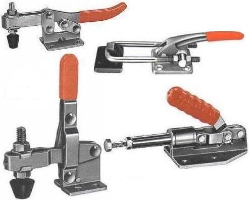 工装夹具种类齐全,包含:水平式、垂直式、推拉式、门闩式、焊接组立式、F型夹钳、C型夹钳以及气动夹钳等