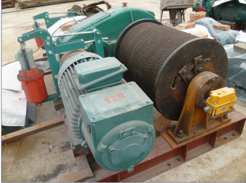 建筑卷扬机把电能经过电动机1转换为机械能,即电动机的转子转动输出,经三角带2、 轴3、齿轮4,5减速后再带动卷筒6旋转。卷筒卷绕钢丝绳7并通过滑轮组8,9,使起重机吊钩10提升或落下载荷Q,把机械能转变为机械功,完成载荷的垂直运输装卸工作。