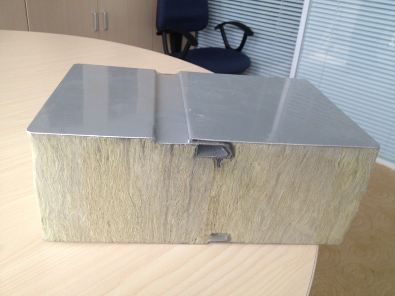 型岩棉棉夹芯板 该板型可加工表面效果有——水波纹,纯平,浮雕,方波(供选择)。 有效宽度:1 000mm.(隐藏式螺钉连接或明钉式连接)。