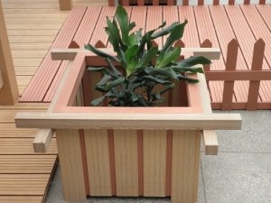 塑木复合材料用于室内外各种铺板、栅栏、园林亭、桥、围栏、楼梯板、庭院扶手、花箱、露天铺地板、废物箱、路板,各种式样的室外凳、椅。