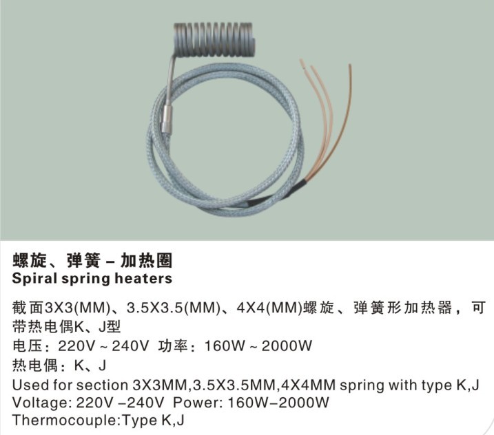 截面3*3(MM)、3.5*3.5(MM)、4*4(MM)螺旋、弹簧形加热器,可带热电偶K、J型