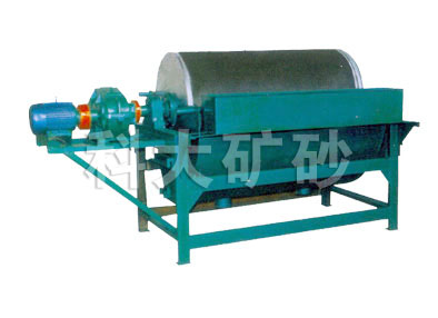 CTS、CTN、CTB系列永磁筒式磁选机磁场分旋转式、固定式两种机构,固定式主要适用于弱磁场湿式选别细颗粒的强磁性物质,或者除去非磁性矿物中的强磁性矿物,当浆流入磁场区时,其中强磁性矿物被吸附在圆筒表面,弱磁性和非磁性矿物被分选后排除,而吸附在圆筒表面的强磁性矿物随圆筒的旋转被带出磁场区。旋转式适用于细粒强(中强)磁性矿物的干选,由于高速旋转的作用,使磁性颗粒的磁滚翻次数大大高于普通磁选机,这对于破环磁团聚,提高富矿比具有显著的效果,矿物经分选后被分离成磁性物和非磁性物两种,分别从各自的排矿口排出该机,适用于矿石粒度为0.6-6mm的粗选和精选。