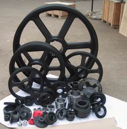 锥套皮带轮,就是一种在安装轴与皮带轮之间嵌入一个锥套的机械联接组合件,其中靠内六角螺钉自锁紧皮带轮于锥套,靠锥套抱紧安装轴。它较之于普通直孔式皮带轮,有诸多优点:结构紧凑,不需要轴定位,安装方便,只须选配不同孔径的锥套,同一款带轮即可应用于不同轴径,增加产品通用性,允许较大轴径公差,槽形可配V带和窄V带等等……