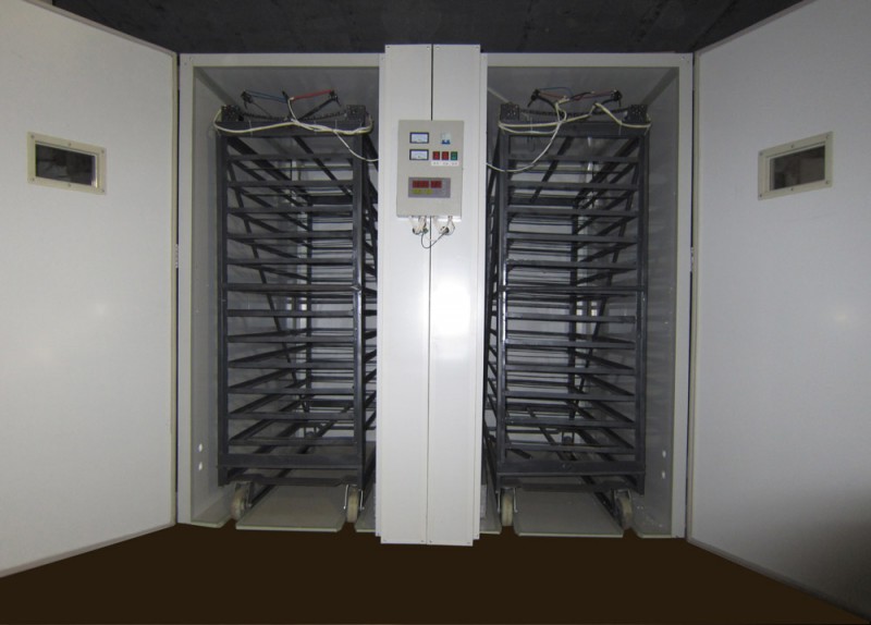 产品详细信息: 微电脑全自动孵化机 彩钢板外壳蛋架车结构 孵化出雏全自动一体机,可分批孵化出雏。 可靠精确的温湿度控制,进口温湿度传感器。 科学循环的通风系统 容鸡蛋量:12672枚 使用电压:220V/50hz 控温精度:≤±0.1℃ 正常功率:2000W 包装尺寸:3090×1760×2080 ●数码显示,自动控温、报警、翻蛋、均温、控湿、煤电两用