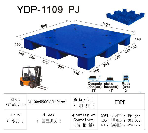 塑料托盘(pallet)是为了便于货物装卸、运输、保管和配送等而使用的由可以承载若干数量物品的负荷面和叉车插口构成的装卸用垫板。它是物流产业中最不起眼,却又无处不在的一种物流器具,是静态货物转变为动态货物的主要手段。尽管只有一米见方大小,却“可以移动整个地球”,所以又叫做“活动的地面”、“移动的货台”。