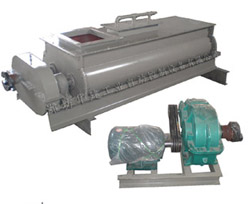 通过装在一对旋向相反的双轴上的螺旋叶片,进行均匀搅拌,并进入下一道工序。