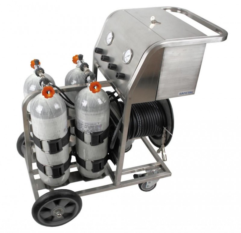 4个9升碳纤维气瓶,两人同时工作的时间达135分钟(4 x 9升按40升/分钟流量)