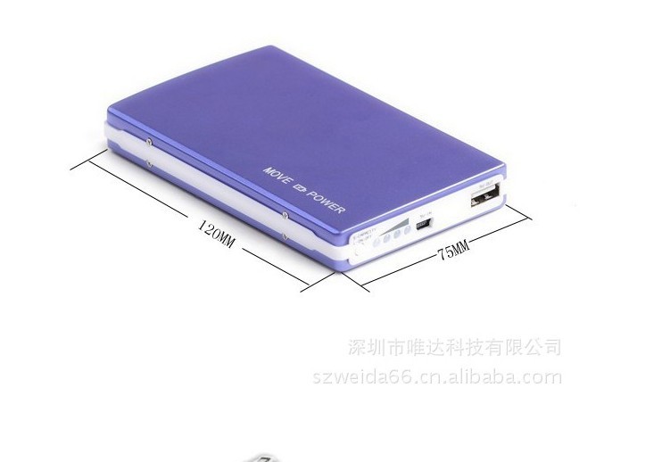 产品介绍产品名称:移动电源内置电池容量:10000mAh输入:5V 1000mAh输出:双USB口输出 5V 1000mAh 5V2100mAh可循环使用500次以上,4LED电量指示灯产品属性尺寸:120*75*15mm 重量:200g适用于 各式手机,MP3 MP4播放器,数码相机等外观材质:铝合金外壳 4个眼色其他说明此产品内值容量较大,有多种颜色可选,可以作为礼物之选.交易说明订货量(套) 价格 1-499 110.00元/套 500-999 100.00元/套 ≥1000 95.00元/套