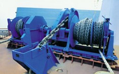液压组合式系泊起锚机采用电动-液压供源方式,锚链筒左右对称布置,每台2个锚链轮、2个绞缆筒、2个副卷筒。由液压马达通过开式齿轮传动。动力泵站由2个油泵机组和1个油箱组成,比例阀在机组旁操作控制。闸刀掣链器、电控系统、液压泵站等组成。液压锚机安装在舰船首艉部主甲板上,在舰船起航时起锚,舰船停航抛锚为船舶系泊安全设备。安装时保证锚链与链轮的包角为117-120度。