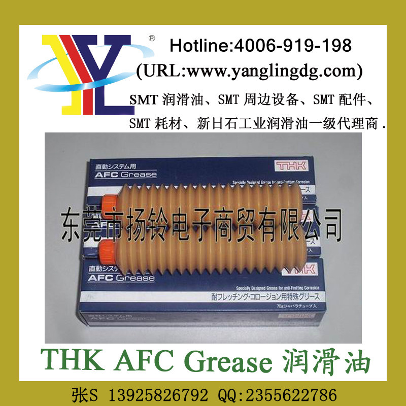 东莞市扬铃电子商贸有限公司专业销售THK AFC润滑油,THK AFC润滑油得到了很多客户的一致好评.欢迎同行,工厂前来咨询选购.AFCI润滑油为FUJI贴片机/YAMAHAMH贴片机/JUKI贴片机导轨,丝杆专用油THK AFC润滑油我们有大量库存’源自日本. 100%原装进口.东莞扬铃电子有限公司张小姐13925826792销售THK AFC润滑油已经有9年了.