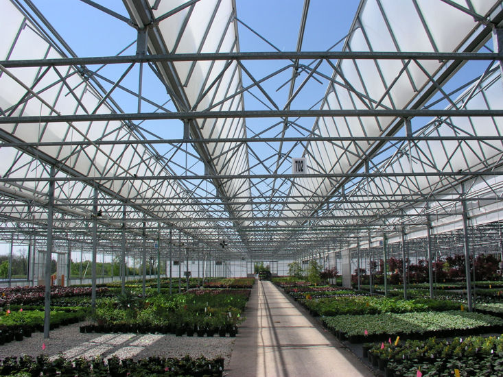 结构形式为,纹络三屋脊温室,覆盖材料为玻璃或阳光板,温室屋面可以全部电动打开,使室内为处于同一自然环境。