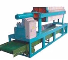 快开压滤机是一种快速入料、快速拉板卸料的全自动设备,设备通常采用大板面,小面积,两端入料,油缸行走,三组拉开,最终达到入料快,卸料快的目的。