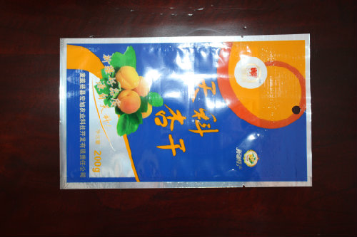 BOPP/VMPET/LLDPE三层复合,特性:防潮,隔氧,遮光。用途:各类食品,米制小吃,零食,茶叶