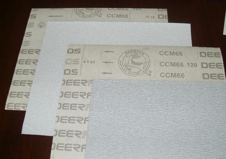 CCM65:白色涂层砂纸、此款产品是基于CC261产品研发出来,具有CC261砂纸特点纸基柔韧、磨料锋利,同时还具有特殊防堵塞涂层,适合干研磨,专业打磨原子灰、油漆。如竹木地板行业常用的630*1525砂油漆用砂带。库存范围120#~800#