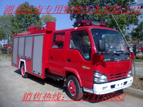 ※消防车又名灭火车、救火车。采用二类载货汽车底盘改装而成,专用部分由液罐、泵室、器材箱、动力输出及传动系统、管路系统、电气系统等组成,广泛适用于城镇公安消防队、石油化工、厂矿企 业、森林、港口、码头等部门,可迅速接近火场展开灭火战斗,扑救各种火灾,是理想的消防装备。