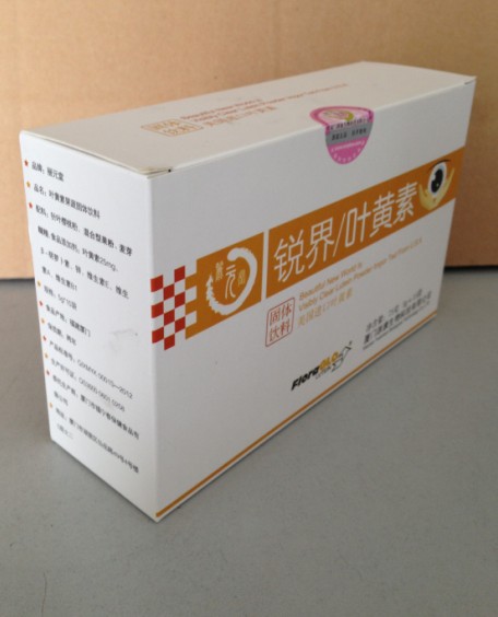 产品介绍一、产品信息:① 成分:叶黄素25mg、β胡萝卜素、维生素A、维生素E、维生素B1、针叶樱桃粉、混合型果粉、麦芽糊精等。② 原料:来自美国Kemin.公司FloraGLO专利叶黄素,荣获世界多国专利③ 规格:5g×15包/盒④ 产品标准号:Q/XMYK 0001S-2012⑤ 生产许可证号:QS350006010258⑥ 食用方法:取本品3g-6g添加于适量温水中,溶解即可饮用(儿童1包/天,成人1-2包/天),专家建议:锐界叶黄素产品,可溶解性强,能够在谁,牛奶,奶粉,汤等各种饮料中方便饮用,口感好,可长期饮用。⑦ 存储方法:请置于阴凉干燥处,建议置于冰箱冷藏⑧ 保质期:24个月⑨ 条形码:6927638400610产品属性三、使用方式:1. 食用方法:取本品一包投入温水、奶或汤等各类饮品中,溶解即可饮用。2. 建议用量:每日推荐摄入量3g—6g(一至二包),可依个人之不同健康状况及实际需要定。