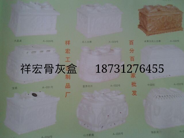 渊源:目前出土最早的是陶瓷骨灰盒属于两千多年前,其在耶路撒冷被发现款式:棺木式、宫殿式 、箱体式、船式、坛式等。材质:骨灰盒的材质种类很多,有木质,玉石,陶瓷,塑料,水晶,金属等。