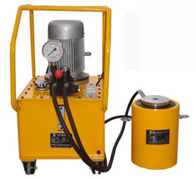 产品介绍800T双作用大吨位千斤顶具有输出力大,重量轻,承载能力强,可在任意空问位置下远距离操作的特点,配以本公司电动超高压泵站,可实现:顶、推、拉、挤、压等多种形式的作业。广泛应用于交通,铁路,桥梁,造船,建筑,工矿等企业的设备顶升安装,调试,检修,地下顶管等操作。