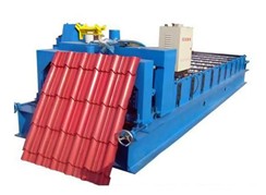 950型琉璃瓦成型机的特点及用途:经该机辊轧成型的压型板,既庄重高雅,又美观新颖,而且外观平整,波纹均匀,利用率高,强度大,生产自动化程度高,成本低廉,经久耐用。产品主泛适用于大中型企业民用建筑,如厂房、机车库、飞机库、体育场馆展览馆、影剧院等。950型琉璃瓦压瓦机生产工艺流程:开卷-正确送入成型即送料轴-计量长度-彩板压型-定尺切断-成品出料