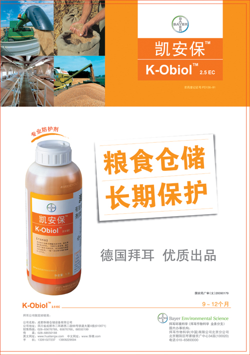 2、长期保护:采取正确的方式应用凯安保后,可对粮食提供长达一年的保护。对于粮食的长期储存提供了有效的保护。