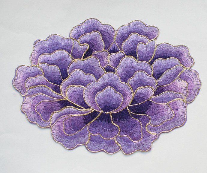 6、带亮片、串珠、水钻的布贴,以及用金属线绣制的布贴,应先从反面熨烫,从正面烫会将串珠的线,串亮片的线融掉,而出现亮片串珠掉落的情况。有水钻的从正面烫会影响烫钻的牢固度。布贴固定后可以再从正面将部分边角再处理一下。