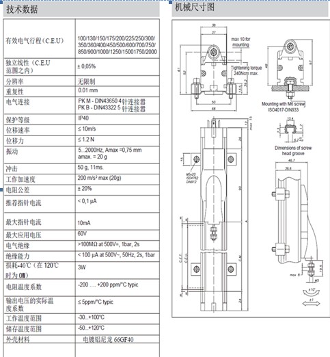 产品介绍GEFRAN杰佛伦PK直线位移传感器,该产品? 采用新型槽口设计--传统支架式固定系统的理想替代方案。性能参数要特征:? 改良型设计满足各种条件下可靠测量的需求。? 用M5螺纹