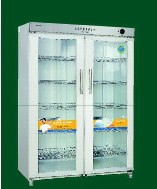 消毒柜是指通过紫外线、远红外线、高温、臭氧等方式,给食具、餐具、毛巾、衣物、美容美发用具 消毒柜、医疗器械等物品进行杀菌消毒、保温除湿的工具,外形一般为柜箱状,柜身大部分材质为不锈钢。 消毒柜是1988年广东顺德康宝电器发明的,消毒柜为中国发明首创的电器产品,广泛用于酒店、宾馆、餐馆、学校、部队、食堂等场所。越来越多的中国家庭注意到消毒柜的重要性,未来也将是家庭日用电器之一。