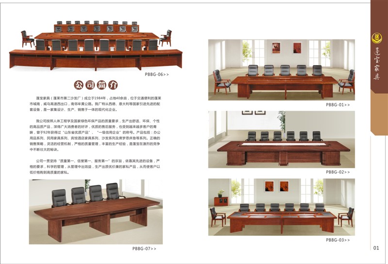 我公司按照人体工程学及国家绿色环保产品的质量要求,生产出舒适、环保、个性的高品质产品,深得广大消费者的好评,优质的售后服务,也受到越来越多客户的青睐,曾于92年获得过“山东省优质产品”、“一级信用企业”的称号。产品包括:办公用品系列、民用家具系列、宾馆酒店家具系列、沙发系列及席梦思床垫等系列。正确的销售策略,灵活的经营机制,严格的质量管理,丰富的生产经验,是蓬宝在激烈的竞争中不断壮大的秘诀。