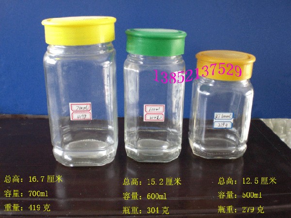 产品有调味品瓶、胡椒粉瓶、麻油瓶、花生酱瓶、酱油瓶、蚝油瓶、腐乳瓶、牛肉酱瓶、辣酱瓶、莎司酱瓶、果汁酒瓶、燕窝瓶、橄榄油瓶、果酱瓶、米酒瓶、罐头瓶、饮料瓶、麻油瓶、蜂蜜瓶、咖啡瓶、125保健酒瓶、葡萄酒瓶、x o 酒瓶、白酒瓶、药酒瓶、奶瓶、果醋瓶、玻璃香水瓶、化妆品瓶、墨汁瓶、农药瓶、玻璃烛台、等玻璃瓶、玻璃罐、玻璃制品。计1000多个品种式样规格。可来样加工定做[7-15]天出产品。可办理烤花、刻字、蒙砂等服务。