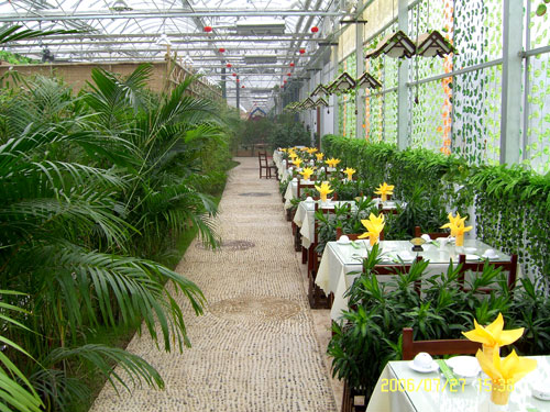 生态餐厅又叫温室餐厅、阳光餐厅、休闲餐厅、天然餐厅等名称。这些餐厅是由种植温室繁衍而来,它们共同的特点是餐厅内种植或装饰有植物、花草,以及建造有各种景观。但各个名字的含义也有不同之处,温室餐厅是以温室为基础发展而成,它的特点是温度、湿度可调整为就餐者感到舒适的范围;阳光餐厅的特点是以阳光为能源;休闲餐厅含义较广,没有清楚的表明餐厅性质。作者认为,几种名称之中,以生态餐厅这个名字为最科学、合理,最能准确描述这类餐厅的个性,也是最有前途和可持续发展的一种餐厅产业。生态温室餐厅是将现代设施农业和绿色餐饮完美结合的产物,以人为本、餐饮为主、景观为为辅的一种大型温室类建筑,把温室的轻巧、便捷、明朗的特点与建筑的多功能性融为一体,餐厅有充满绿色的自然环境,把大自然丰富多彩的生态景观“微缩化”和“艺术化”本公司提供免费售后服务,除因不可抗力和人为因素等外,对工程中的所有设备和材料提供免费售后服务和上门服务,并且定期电话回访,详情咨询15753680017圣龙实业集团温室工程二部