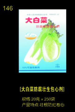 本品含有多种白菜、甘蓝、洋白菜生长发育所需的营养素,能较好地满足白菜对养分的需求,使用本品可促进光合作用,加速营养物质的吸收和运转,调节叶片生长、使叶片浓绿肥厚,生长健壮、棵大叶肥,包心(结球)率高包心紧实,品质好、产量高。本品能抑菌、消毒、防腐,能有效预防白菜软腐病、干烧心、病毒病、霜霉病、黑腐病的发生。[使用方法] :每袋兑水20~25公斤,在白菜、甘蓝连座期、生长期及包心初期各喷洒一次,可有效促进白菜包心,提高产量,增强抗病能力,预防白菜,甘蓝软腐病,黑腐病,干烧心病的发生。