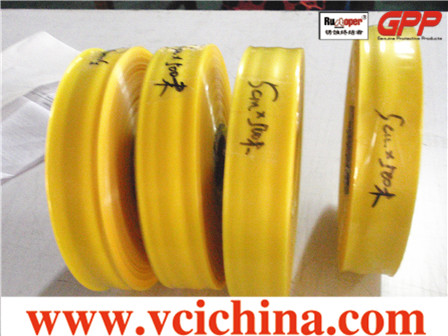 本公司生产的Rustoper(锈蚀终结者)“VCI气相防锈膜/袋”系采用优质复合气相缓蚀剂经特殊生产工艺精心制作而成。利用膜体内含有的I缓蚀剂持续产生的VCI抗腐蚀性气体,将包装内的金属锈蚀机能予以抑制、且将外部环境的所有腐蚀介质进行隔离,从而达到防锈防腐的目的。