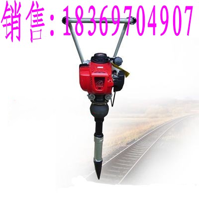 ND-4型内燃捣固镐是一种适用于铁路线路道床石喳捣固作业的手提、便携式专用工具。它是由汽油机作为原动力,通过离心式离合器、偏心轴、橡胶减震器、拖动镐体产生高频扰动力,使枕下石喳重新排列密实,从而实现对道床石喳捣固的目的。特别适用于道岔、隧道、桥涵等大中型养路机械不能作业的道床区域性机动养护作业。该产品设计先进,结构合理,体积小、重量轻、携带方便,操作简单,省时省力,维修方便,易于保养。