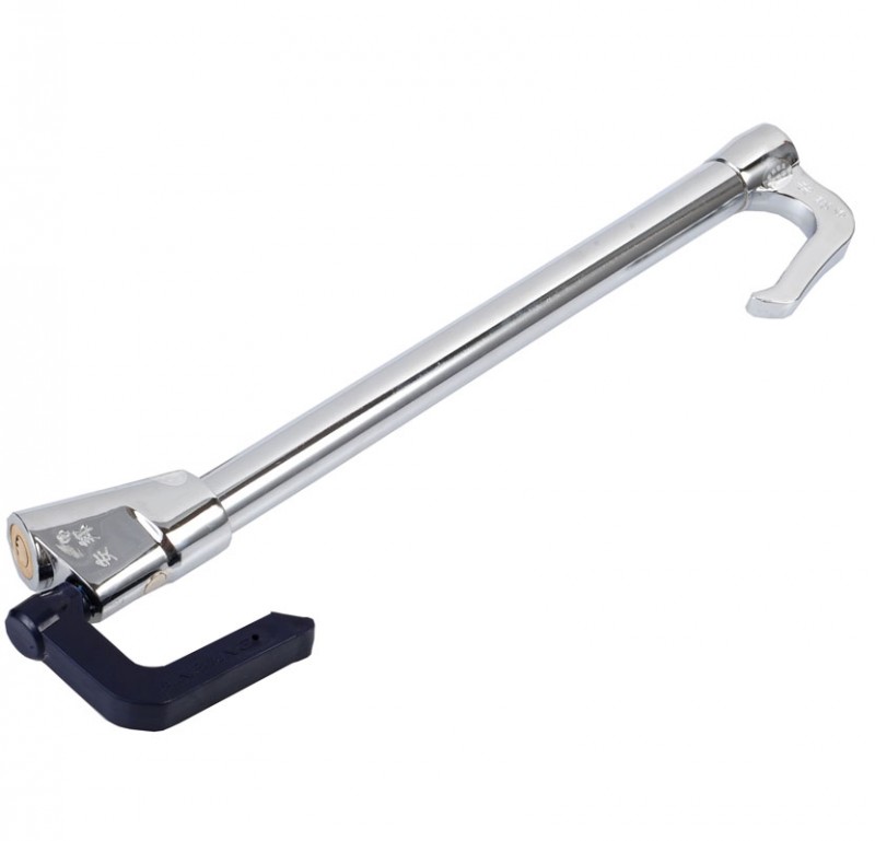 【关于商品】安邦伸缩锁是安邦汽车防盗锁系列中之一,用于各种车型的方向盘离合器油门刹车防盗锁具。锁体采用了全钢镀铬材质和安邦月牙锁芯,配制防复制钥匙3把,净重为1226g。