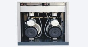 使用及维护1.每日检查油位、排气温度和排气压力,检查有无异常声音;2.每周开机前打开分离器排污阀排放冷凝水,检查各处有无泄漏,检查安全阀,检查皮带磨损情况(目测);3.定期检查进气控制阀、最小压力阀、电控箱连接线端子、安全阀、冷却风扇;4.定期清洗、清扫冷却器,试验安全阀可靠性;5.定期更换机油过滤器芯、油分离器滤芯、进气过滤器滤芯和润滑油。其他说明由于转速仅有980转/分钟,主机各个部件的配合更加容易控制,机械磨损大幅度降低,Sun系列产品的可靠性也得到大幅度的提升。