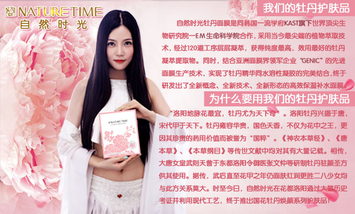 自然时光牡丹焕颜水凝胶渗透面膜,温度感应性,透皮传输技术,纳米技术,移植先进制药技术,效用更高、直观及使用感受上更独特、更安全。 http://nt-2013.taobao.com/