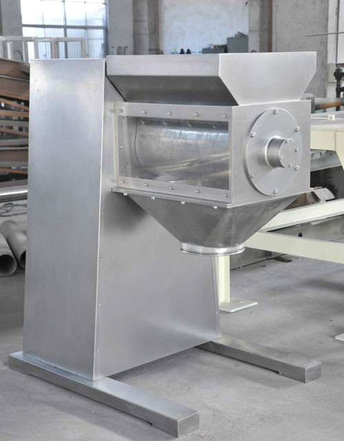 通过机械传动使滚筒往复摆动,将物料从筛网中挤出制粒或粉碎颗粒。