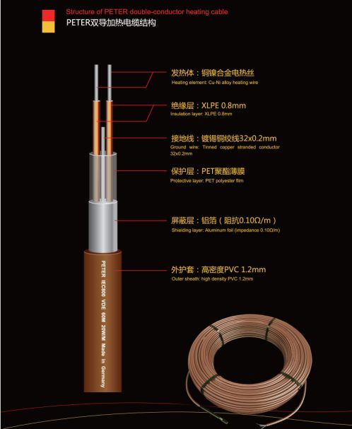 6 、用户利益有保证:德国彼得发热电缆是在全球范围内实行召回制的产品。