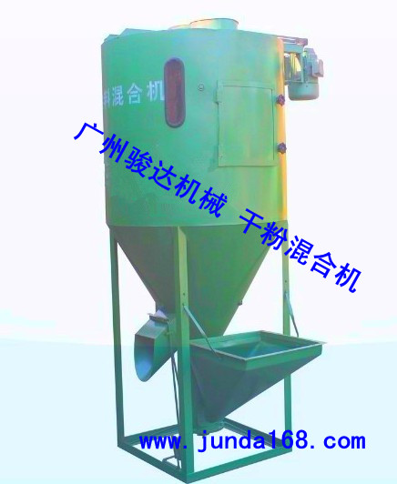 广州骏达机械的立式干粉混合机采用内螺旋提升物料循环抛散的原理进行高精度混合,底部自动进料器提升物料(节省了上料机),采用自动上料搅拌一体化的设计,机内结构设计合理,适用性强,物料流动性好,无粉尘,无死角、无残留,无积淀、全封闭,无粉尘外溢,阀门控制出料。适合多种比重不同的干粉 物料进行高精度混合,解决了立式干粉搅拌机轴承密封不严密的技术难关。本设备适应于多种干粉、细颗粒状物料的混合(如:腻子粉、粉刷石膏、干粉砂浆、彩色水泥、各种矿粉、化工材料、有机肥料等)。搅拌机内胆机件全部采用超厚无缝钢管和锰钢加工,耐磨性高,使用寿命特别长,具有国内同类产品所无法比拟的优越性;整机经过严格的密封防尘处理,环保技术高,其性能稳定,上料速度快,搅拌时间短,生产效率高,物料混合均匀度高,并具有投资少、见效快、占地小、操作简单、使用寿命长等诸多优点